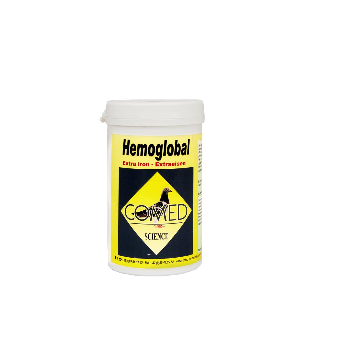 Hemoglobal emilebilir demir ihtiva eden bir tozdur. Güvercin bundan ciddi faydalar sağlayabilir. Bu güvercinin dinlenmesini hızlandırır. Genç güvercinlerin zayıflaması ya da hastalanması halinde verilir.